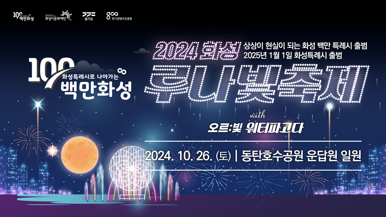 1. 2024 화성 루나 빛 축제,장소:동탄호수공원 운답원 일원,기간:2024년 10월 26일~2024년 10월 26일