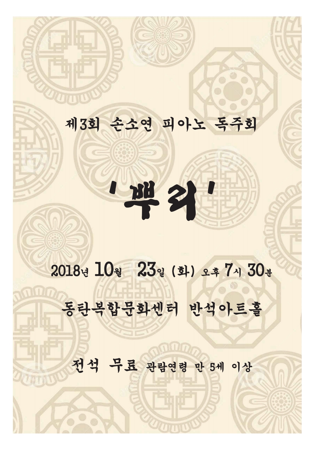 1. 제3회 손소연 피아노독주회 '뿌리',장소:,기간:2018년 10월 23일~2018년 10월 23일