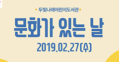 1. 두빛나래어린이도서관 '2월 문화가 있는 날',장소:두빛나래어린이도서관,기간:2019년 2월 27일~2019년 2월 27일