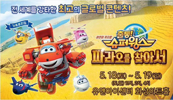 1. 어린이뮤지컬 〈출동! 슈퍼윙스〉- 파라오를 찾아서! - 화성,장소:,기간:2019년 5월 18일~2019년 5월 19일