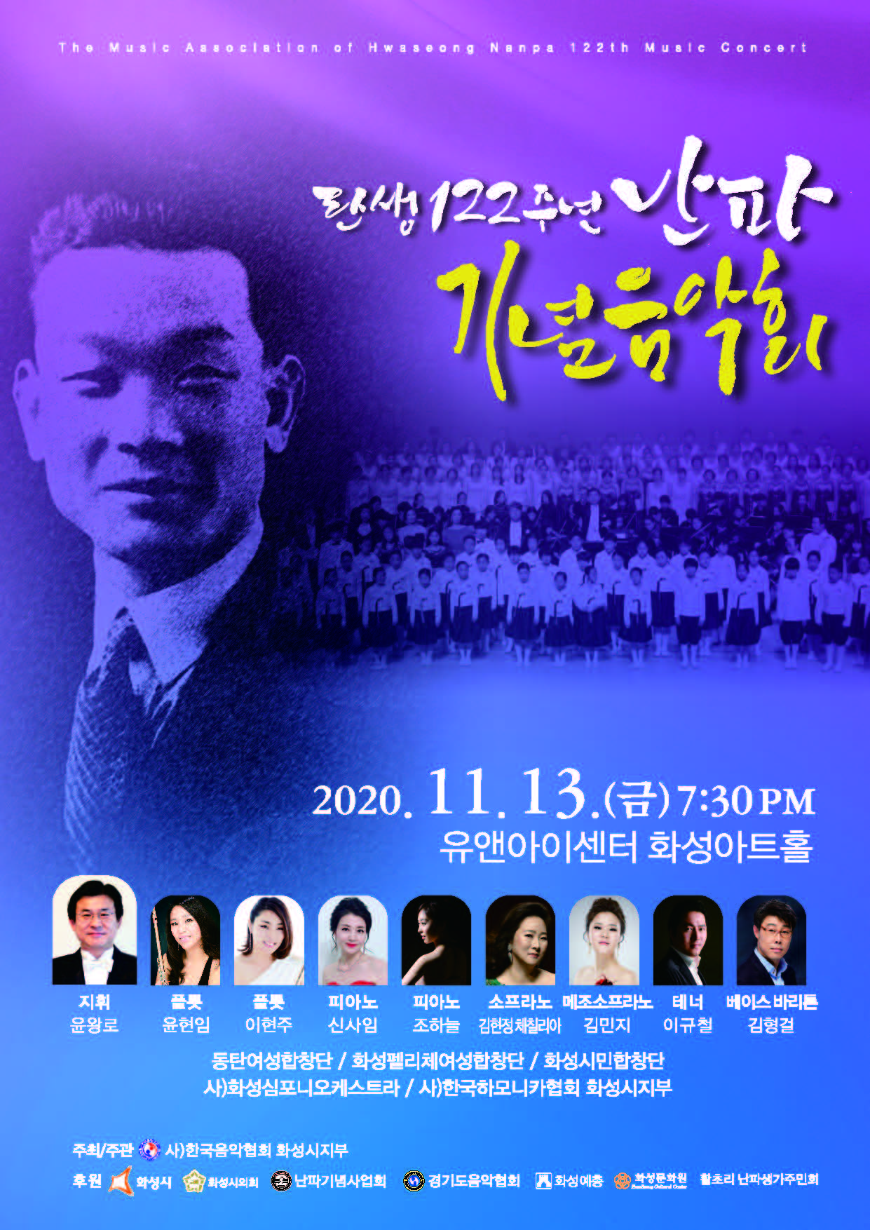 1. 난파탄생 122주년 기념음악회,장소:유앤아이센터 화성아트홀 ,기간:2020년 11월 13일~2020년 11월 13일