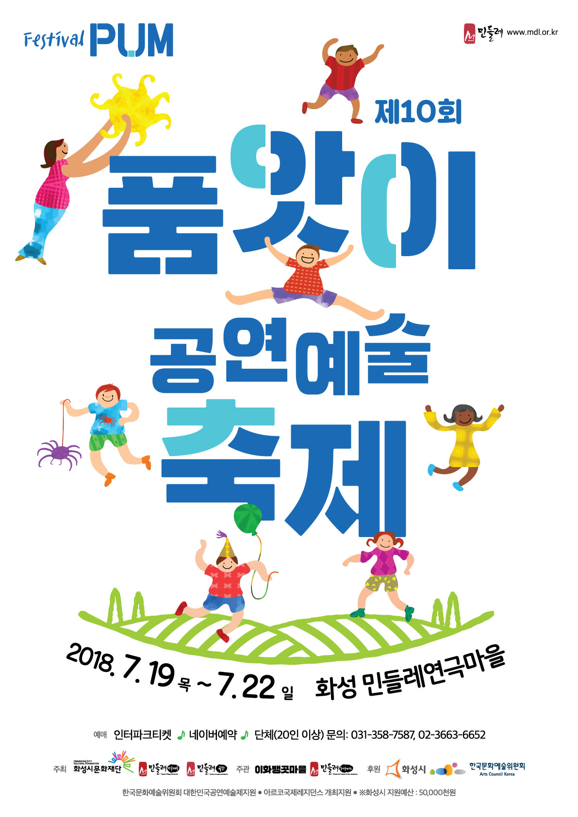 1. 2018 품앗이 공연예술 축제,장소:민들레연극마을,기간:2018년 7월 19일~2018년 7월 22일