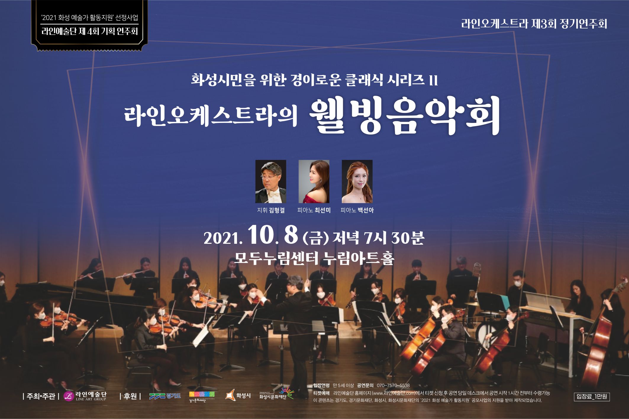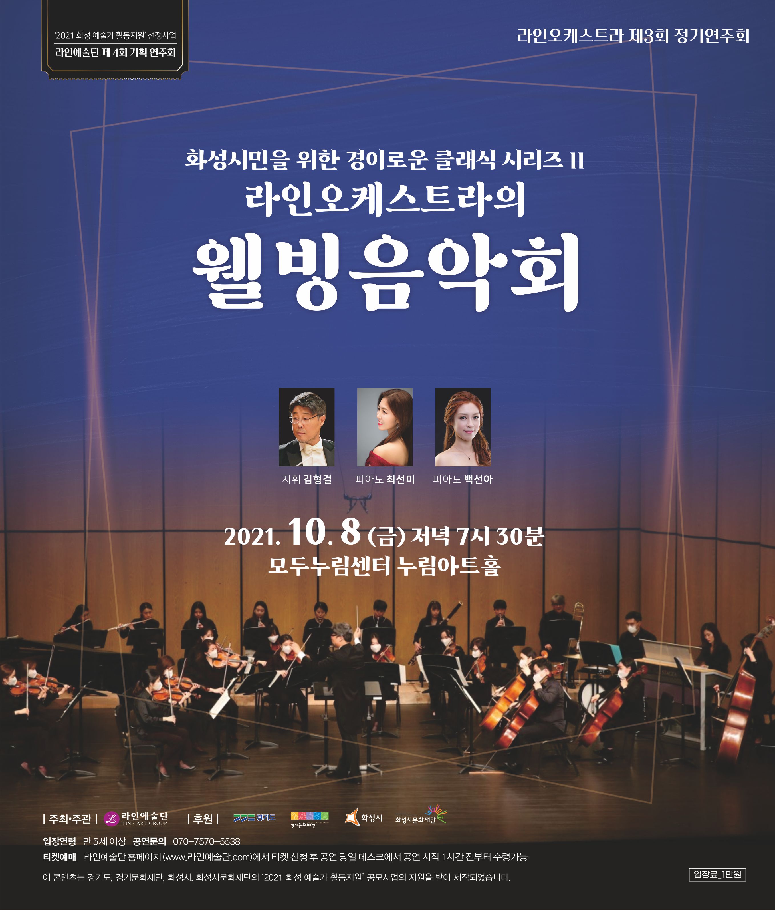 1. 화성시민을 위한 경의로운 클래식시리즈 II 라인오케스트라의 웰빙음악회,장소:누림아트홀,기간:2021년 10월 8일~2021년 10월 8일