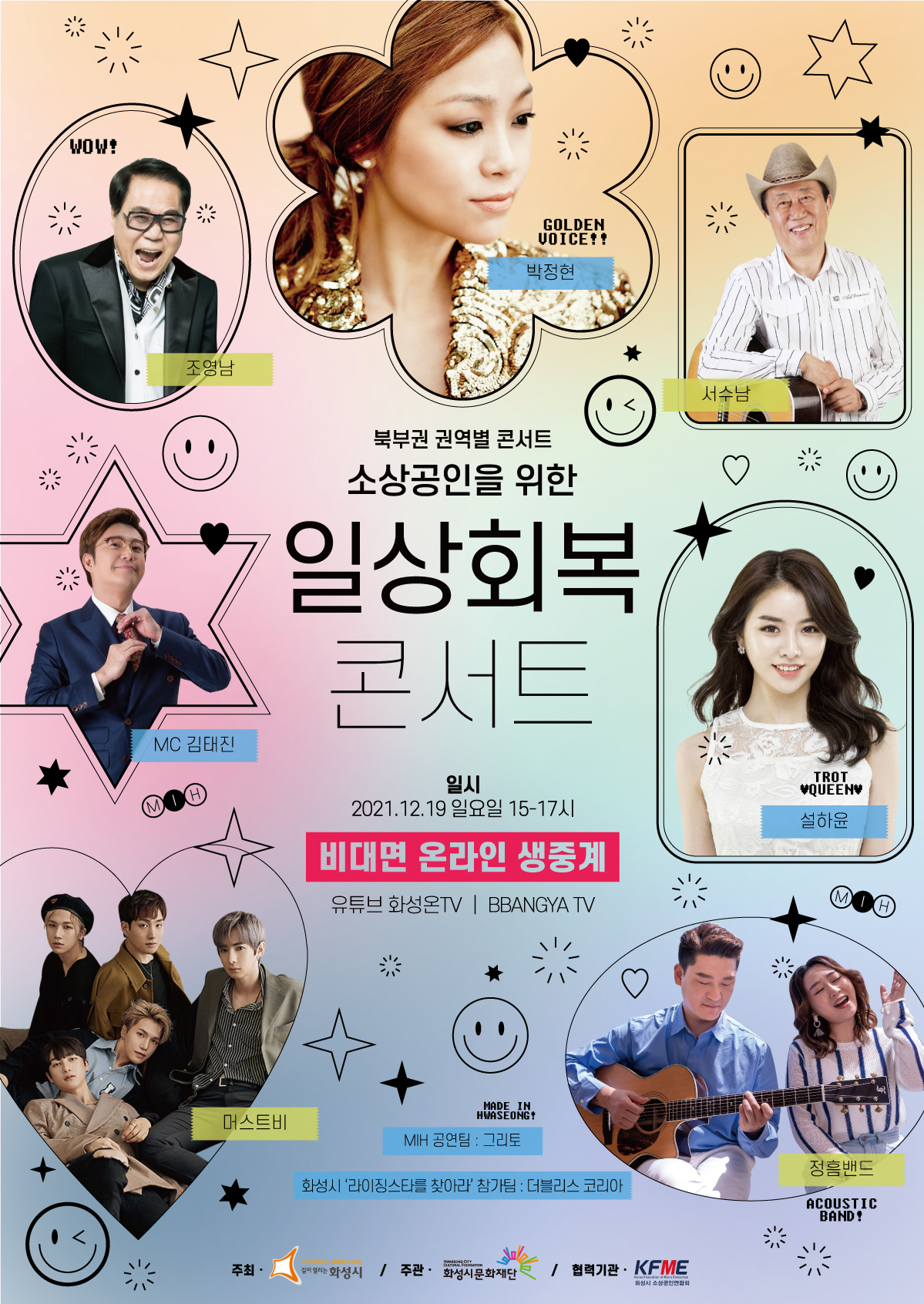 1. 북부권 권역별 콘서트 <소상공인을 위한 일상회복 콘서트>,장소:비대면 생중계 공연(링크 추후 업로드 예정),기간:2021년 12월 19일~2021년 12월 19일