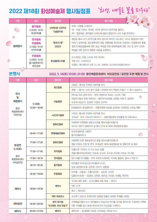 2022년 제18회 화성예술제 행사일정표