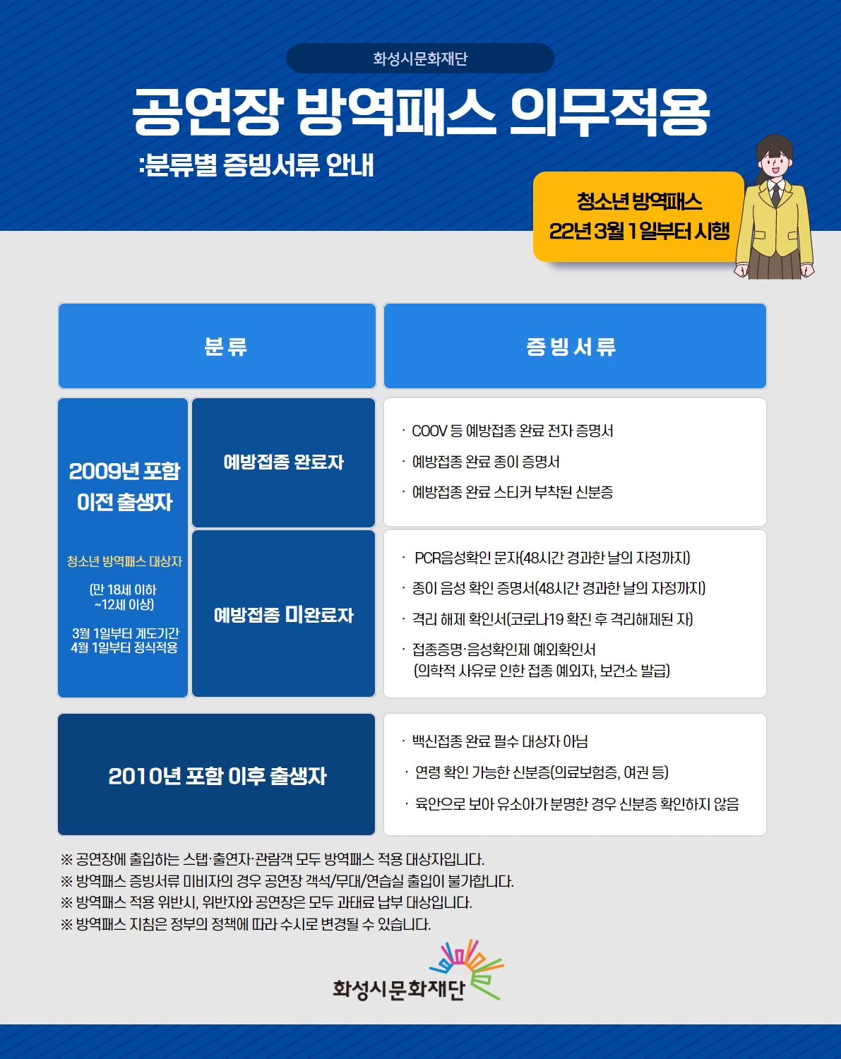 공연장 방역패스 의무적용 안내 (3월 1일부터 청소년 방역패스 적용 추가)