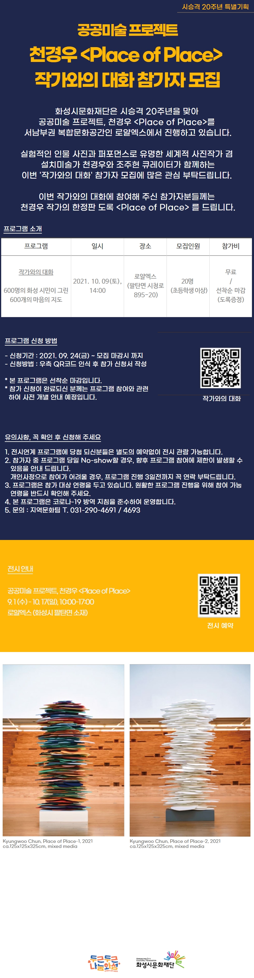 공공미술 프로젝트 천경우<Place of Place> 작가와의 대화 신청 안내