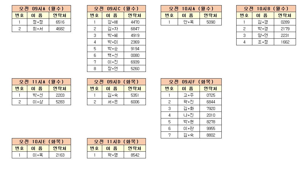 -강습반명, 성명, 전화번호 뒷자리, 강습요일을 확인하시고 강습에 참여해 주시기 바랍니다.