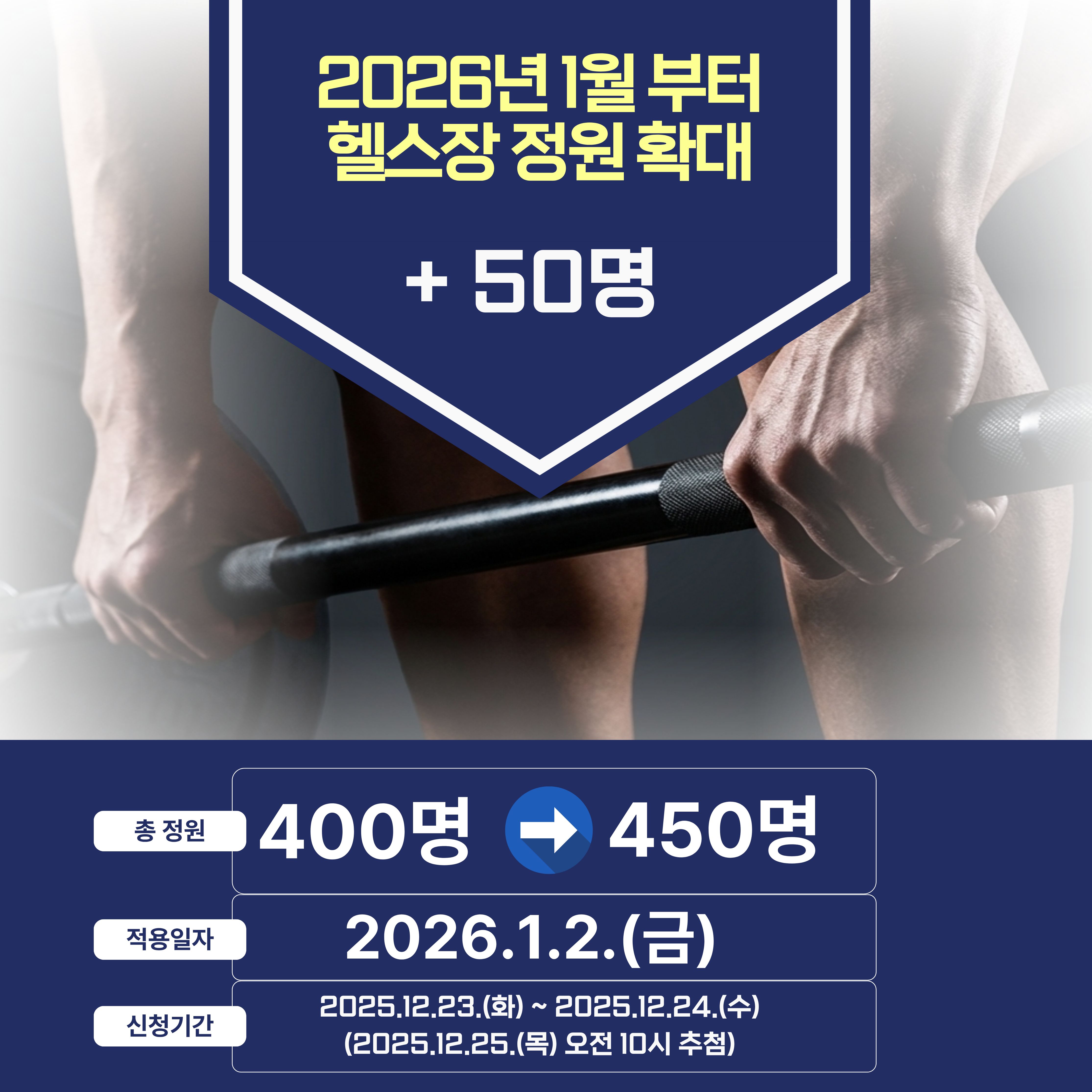 오는 2026년 1월부터 헬스장 정원을 확대합니다.