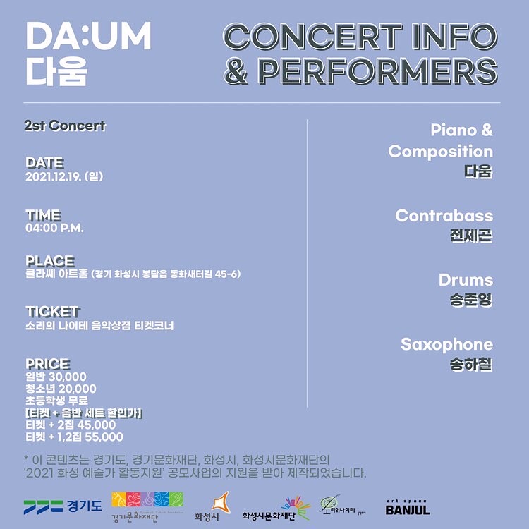 재즈 피아니스트 다움의 두 번째 정규 앨범 [ADAPTATION] 공연