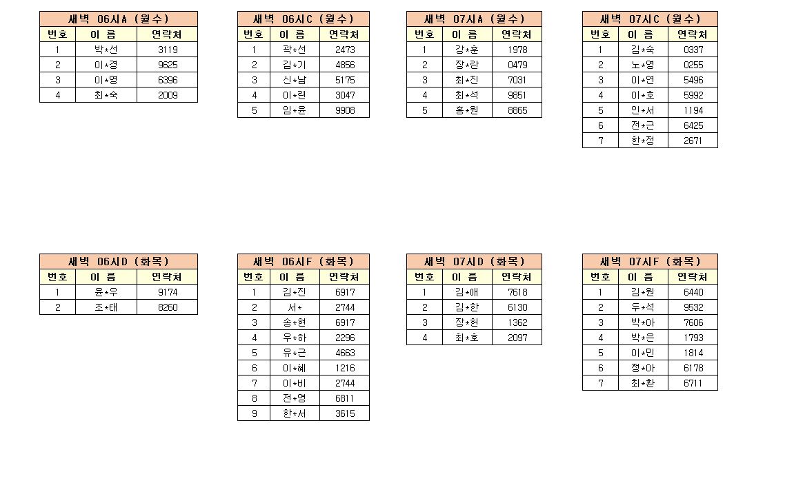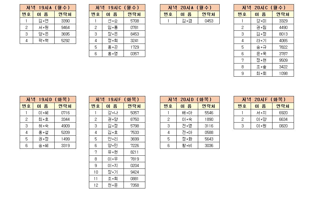 - 강습반명, 성명, 전화번호 뒷자리, 강습요일을 확인하시고 강습에 참여해 주시기 바랍니다.
