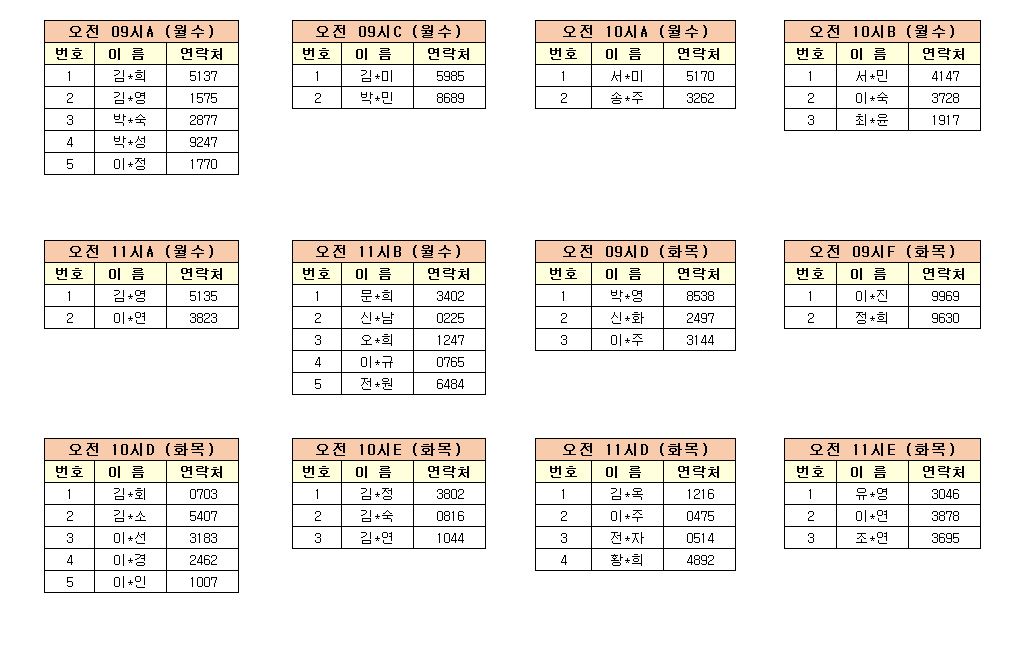 -강습반명, 성명, 전화번호 뒷자리, 강습요일을 확인하시고 강습에 참여해 주시기 바랍니다.