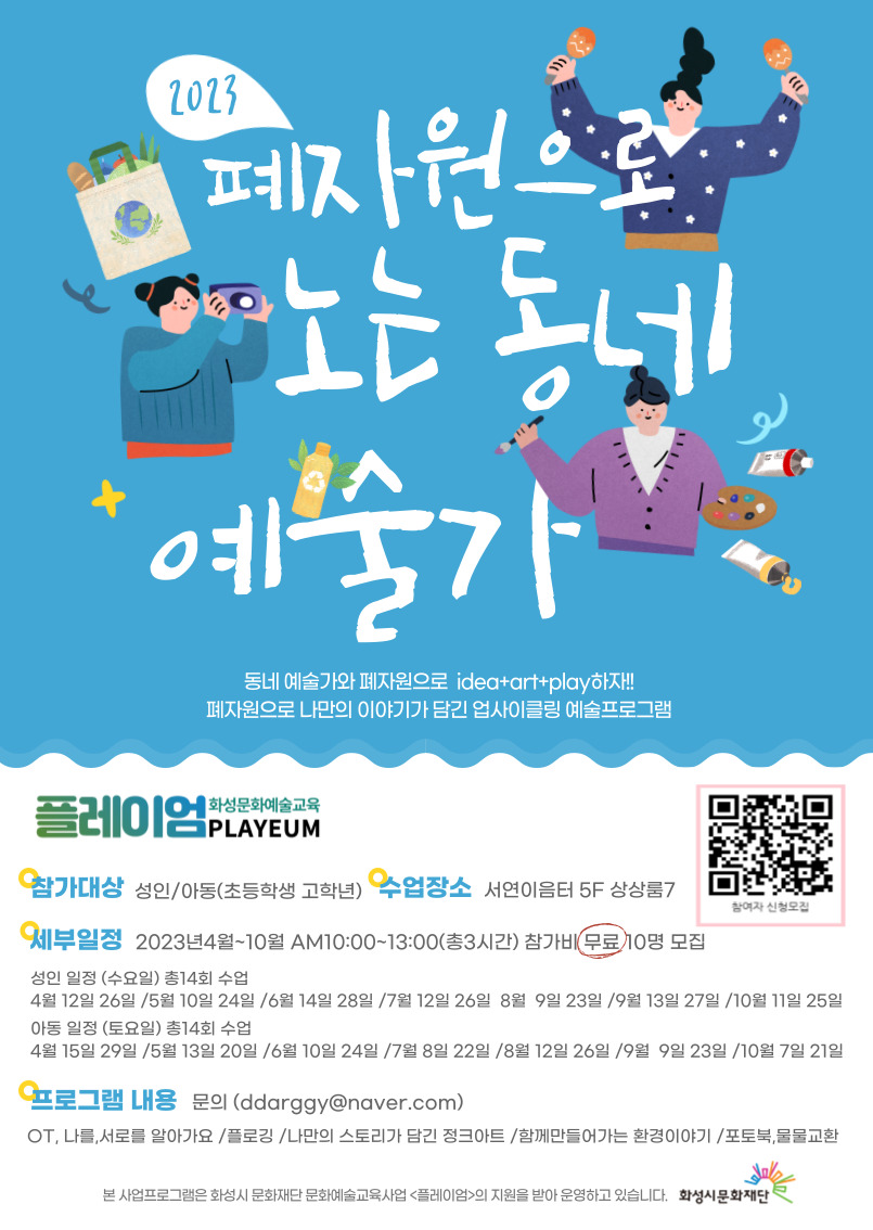 화성시문화재단 문화예술교육사업 <플레이엄> 선정 프로그램 폐자원으로 노는 동네 예술가” 참여자 모집