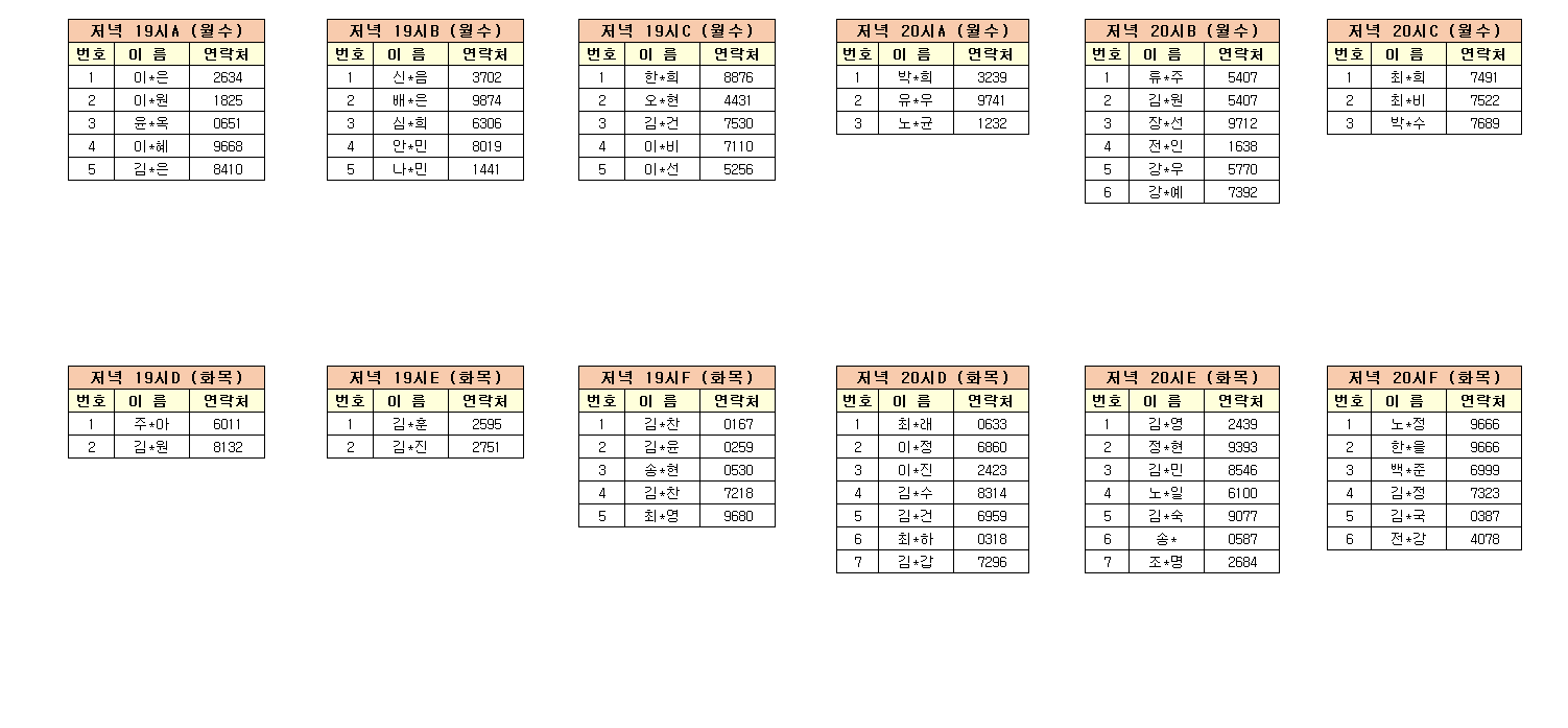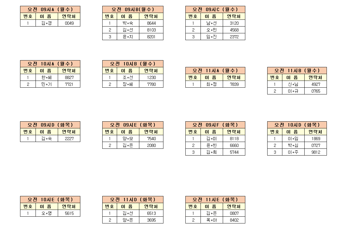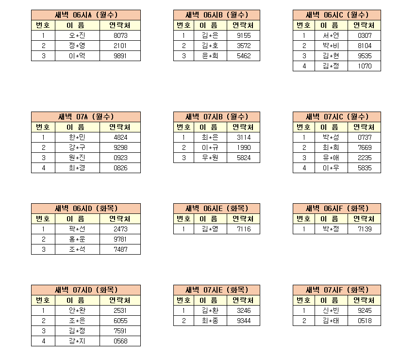 -강습반명, 성명, 전화번호 뒷자리, 강습요일을 확인하시고 강습에 참여해 주시기 바랍니다.