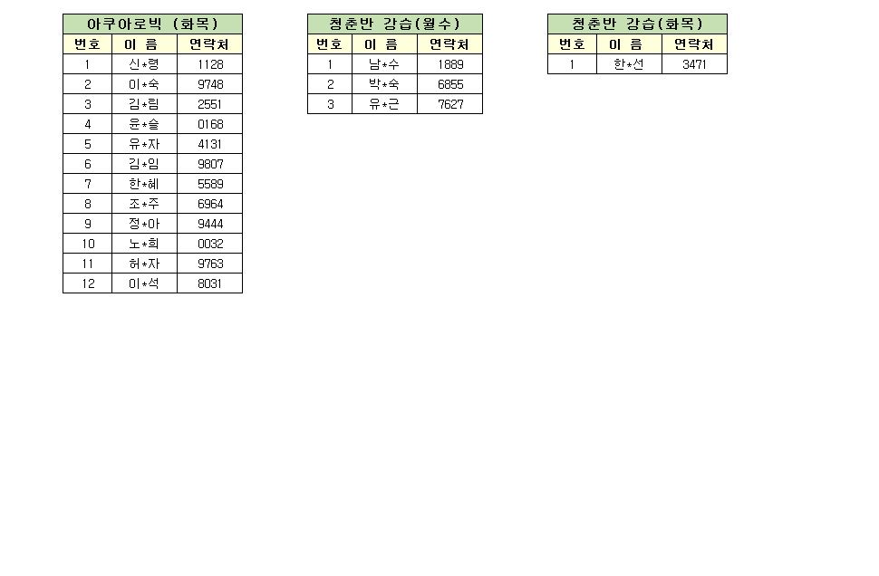 ※ 아쿠아로빅(월수)반은 강사 채용이 이루어지지 않아 12월 강습 대기자 등록이 없습니다.