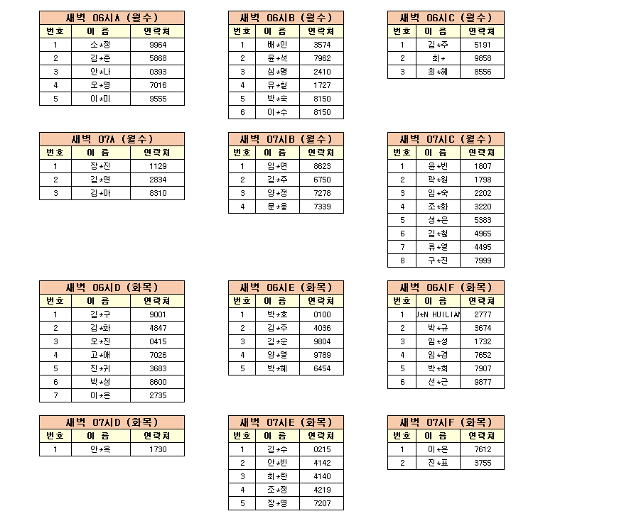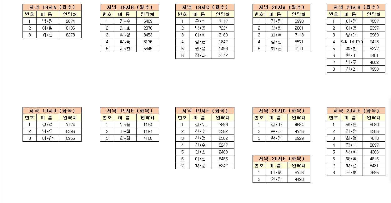 -강습반명, 성명, 전화번호 뒷자리, 강습요일을 확인하시고 강습에 참여해 주시기 바랍니다.