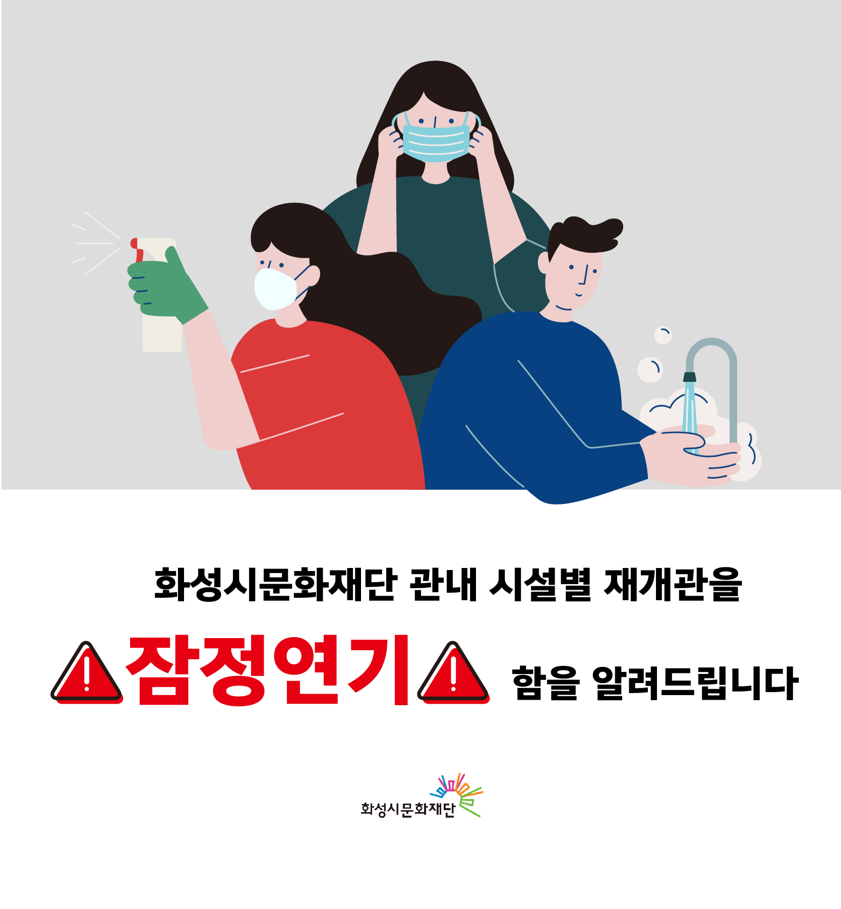 화성시문화재단 관내 시설 재개관을 잠정연기함을 알려드립니다
