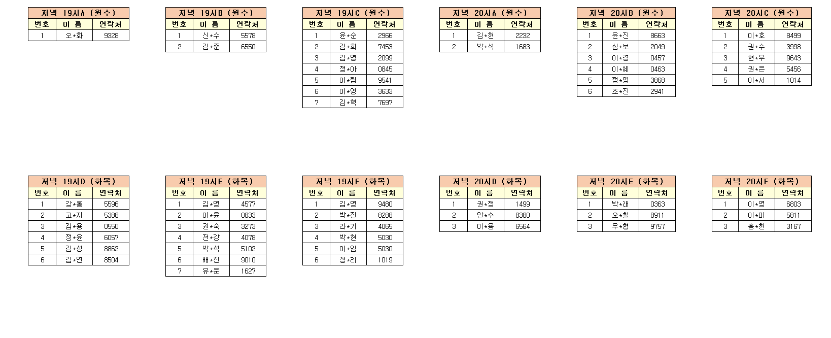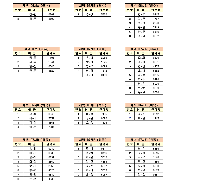 -강습반명, 성명, 전화번호 뒷자리, 강습요일을 확인하시고 강습에 참여해 주시기 바랍니다.