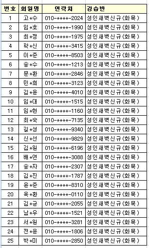 ★ 강습반 : 성인새벽(화목) 07:00, 성인여성(월수금) 10:00, 성인저녁(화목) 20:00