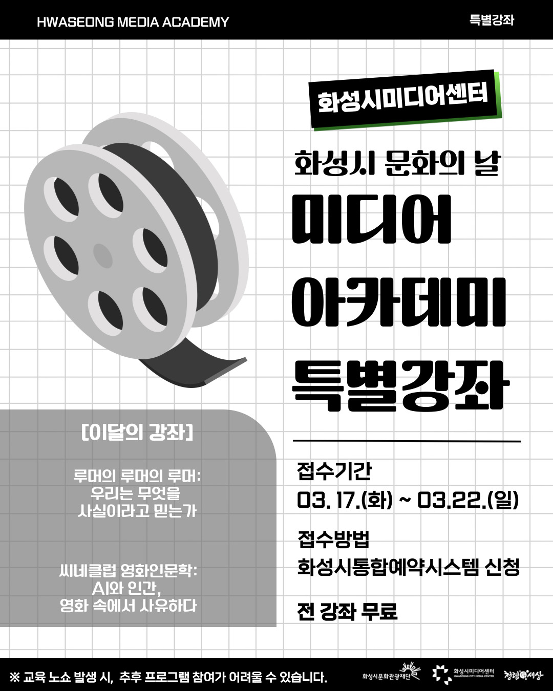[화성시미디어센터] '3월 문화의 날' 연계 특별강좌 개설 안내