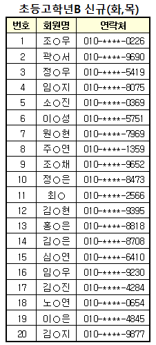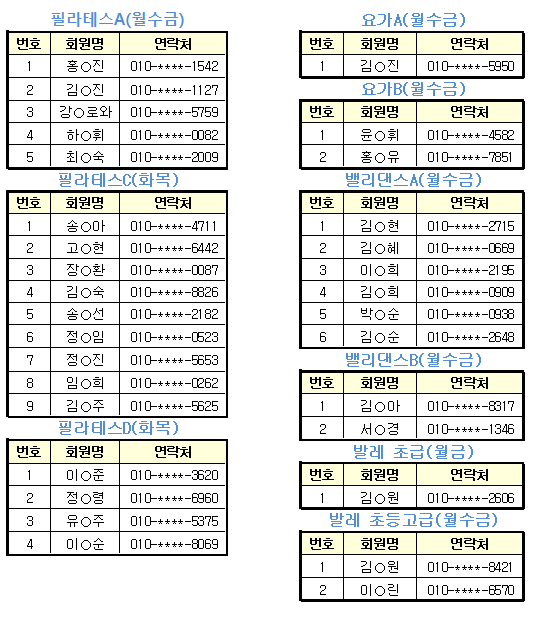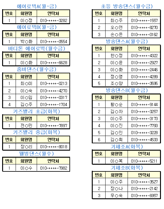 9월 스포츠 프로그램 추첨 결과입니다.