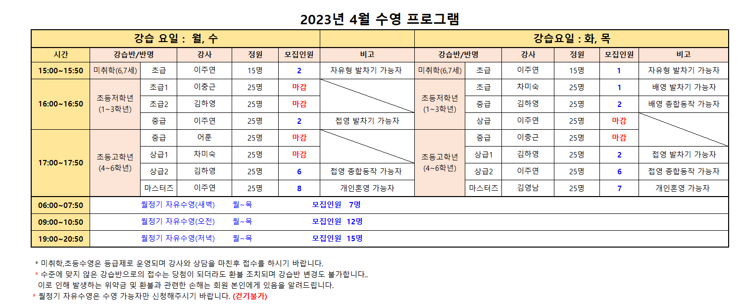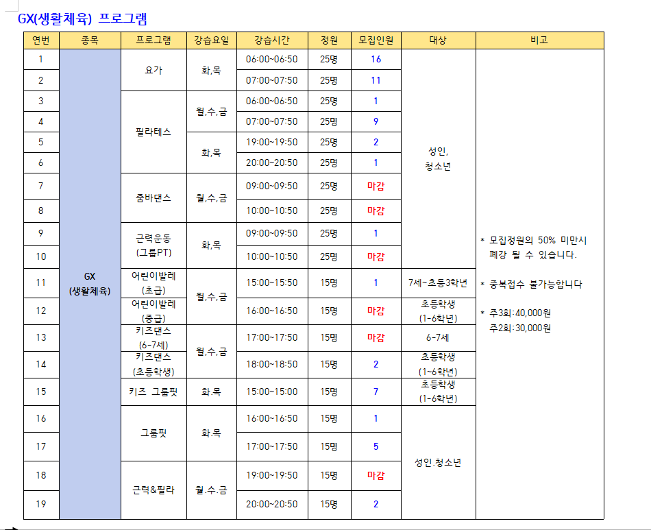 2023년 4월 스포츠 프로그램 추가모집 안내