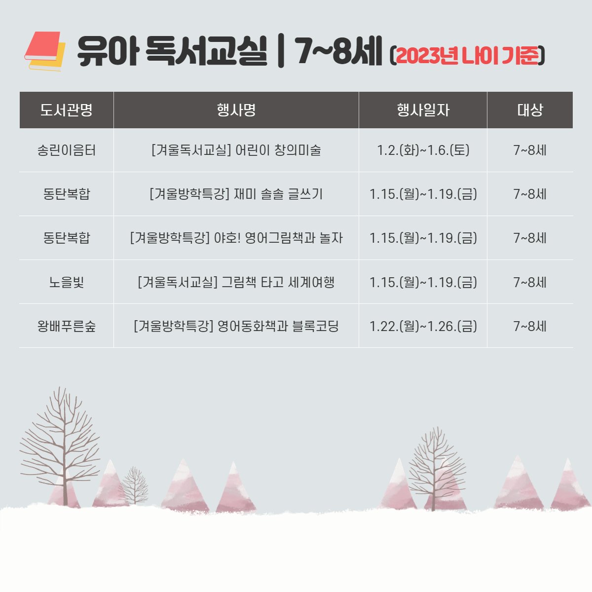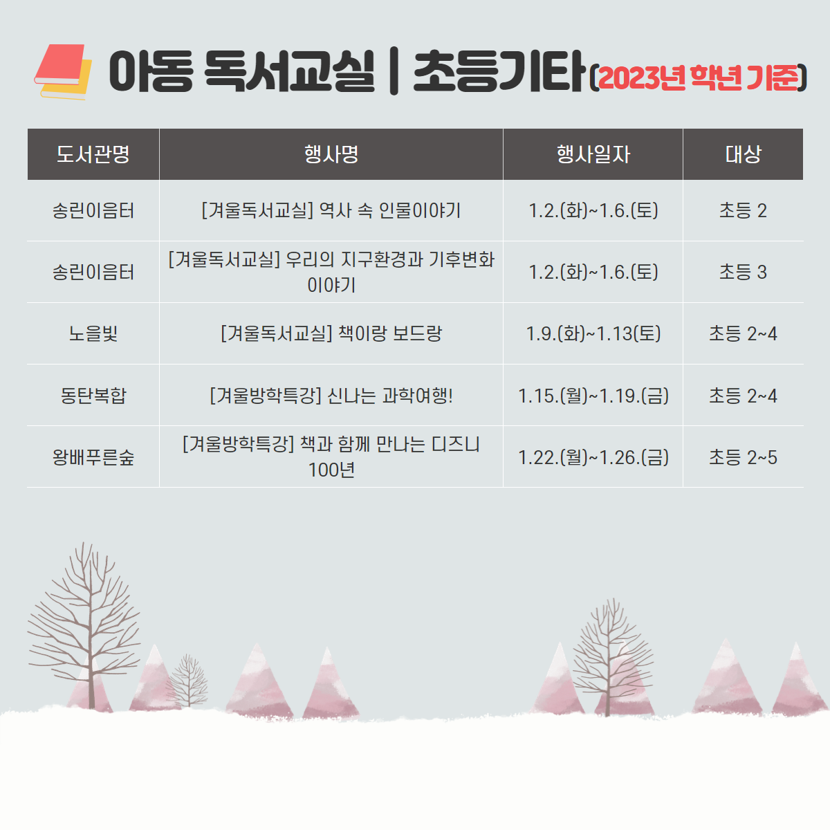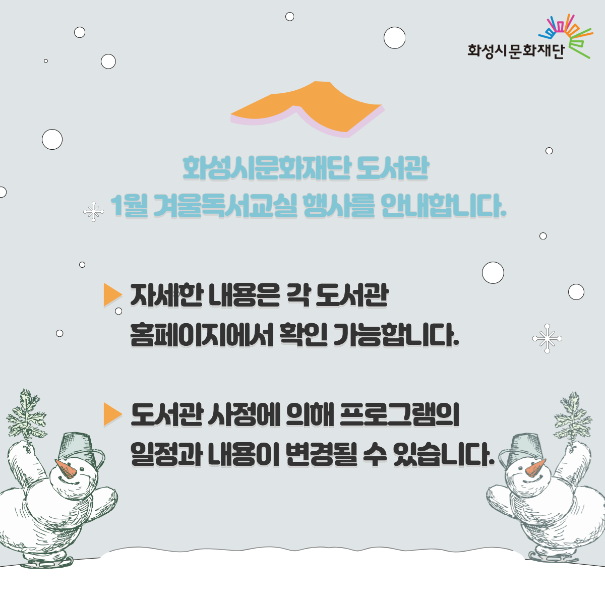 화성시문화재단 도서관 통합 월별 행사 안내 - 1월 겨울독서교실