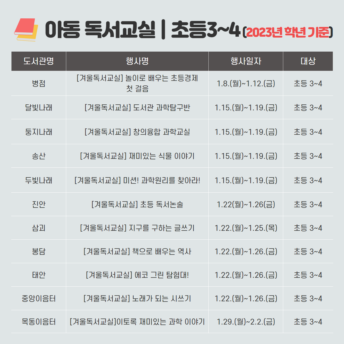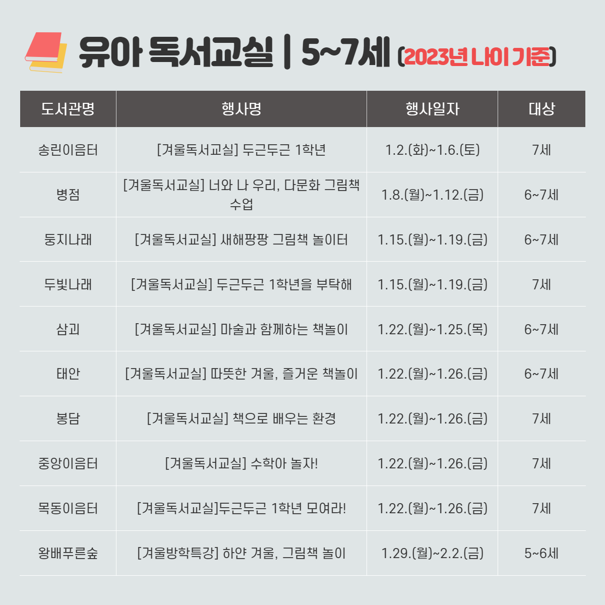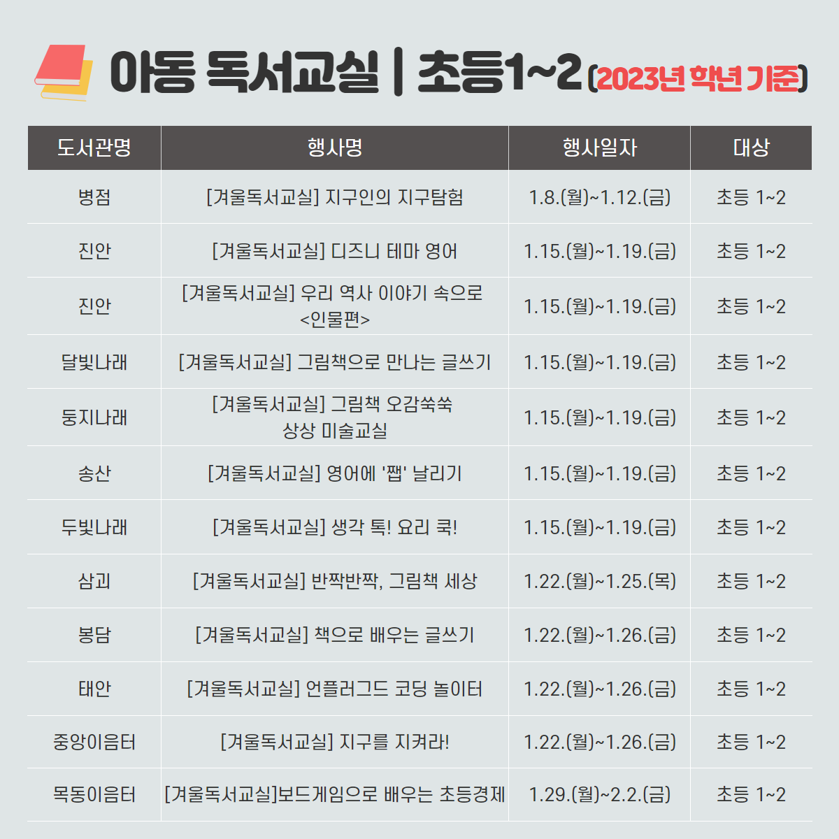 화성시문화재단 도서관 통합 월별 행사 안내 - 1월 겨울독서교실