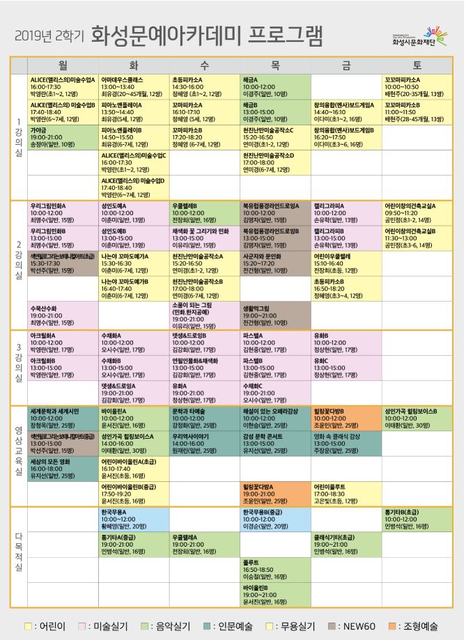 20192학기 화성문예아카데미 신규회원 접수안내