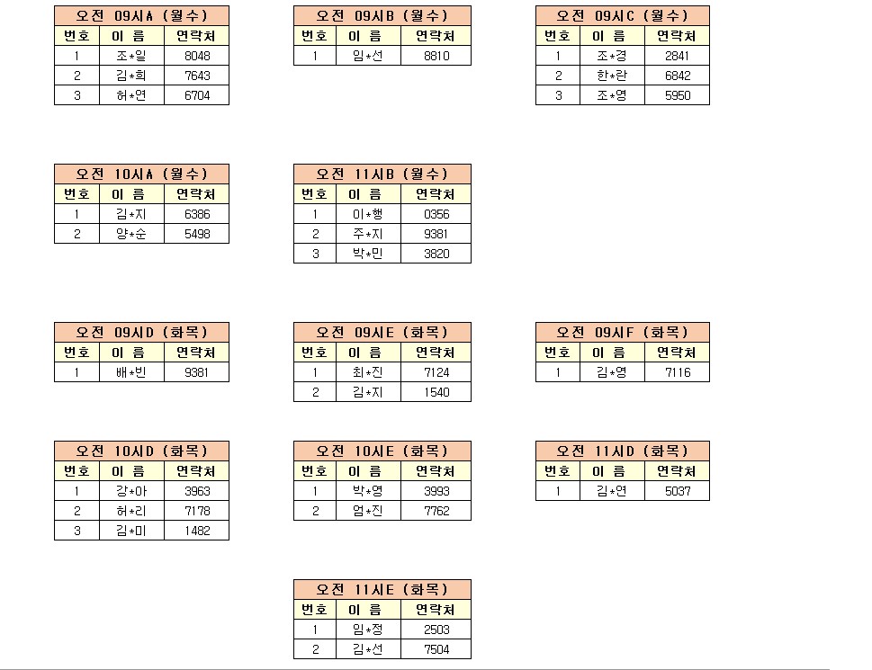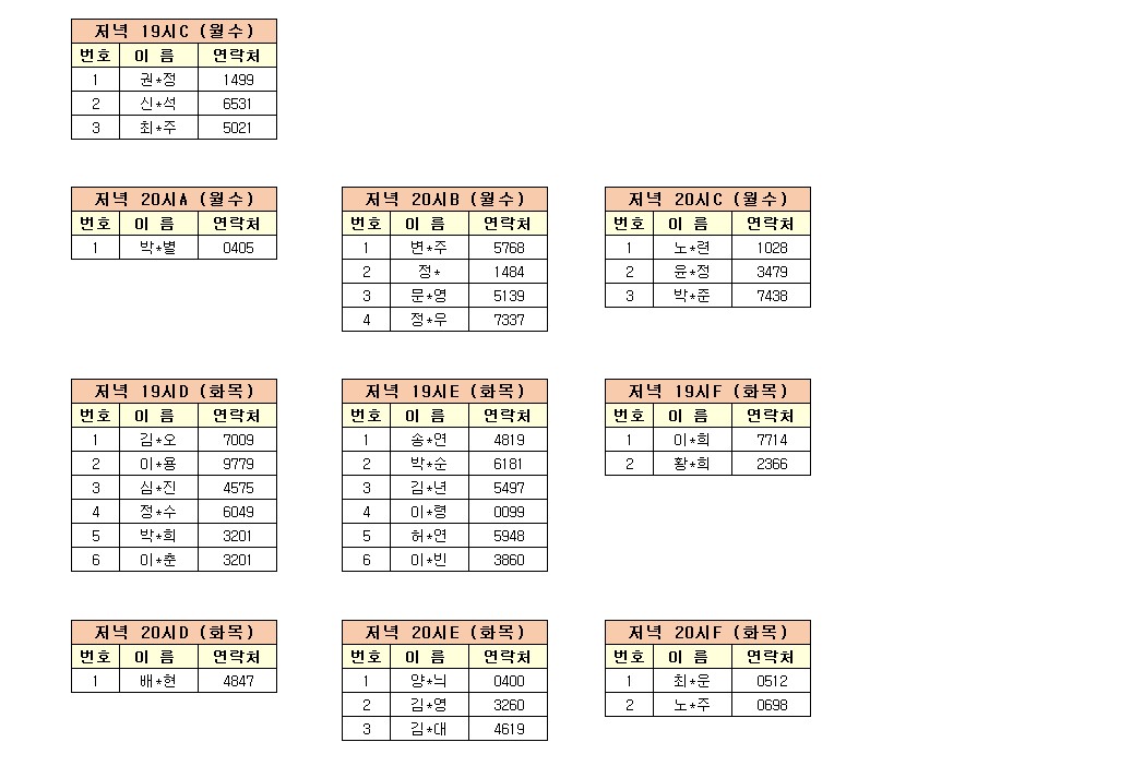-강습반명, 성명, 전화번호 뒷자리, 강습요일을 확인하시고 강습에 참여해 주 시기 바랍니다.