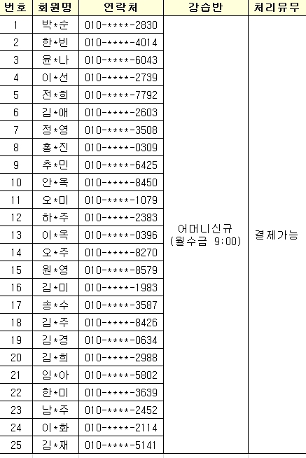 (4월) 수영 신규 여성(월수금) 추첨 현황
