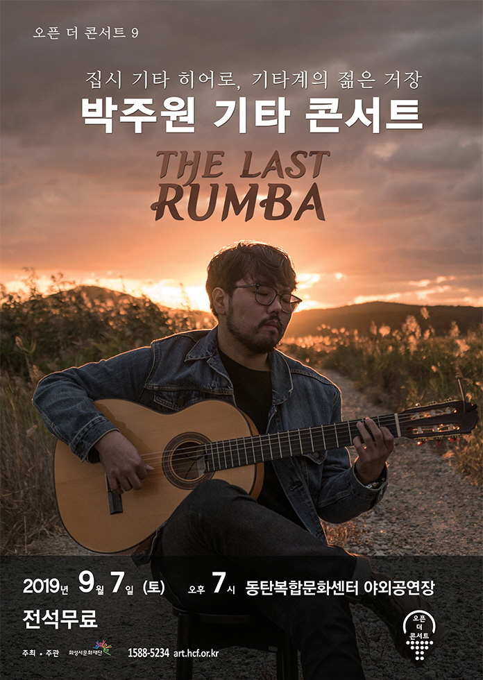 박주원 기타 콘서트 THE LAST RUMBA/2019년9월7일(토) 오후7시 동탄복합문화센터 야외공연장/전석무료/주최.주관:화성시문화재단 1588-5234(art.hcf.or.kr)