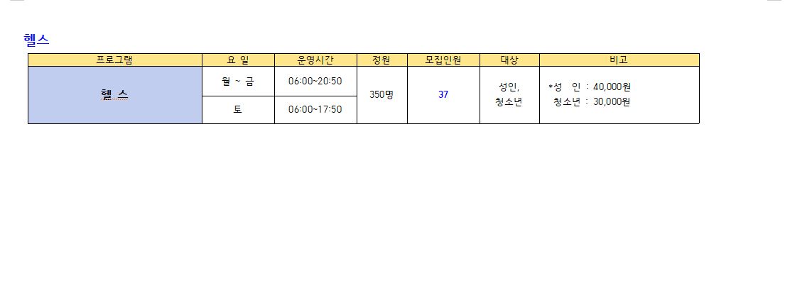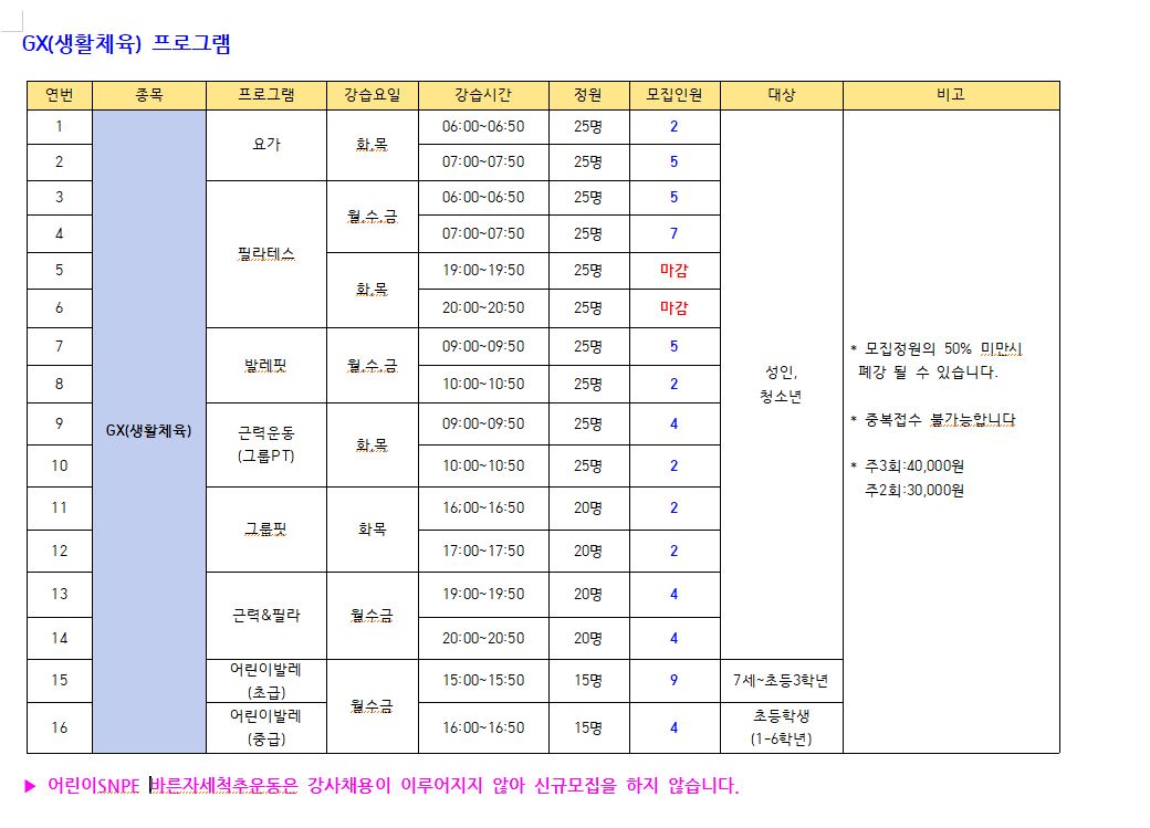 ● 모집프로그램: 수영 프로그램, GX(생활체육), 헬스