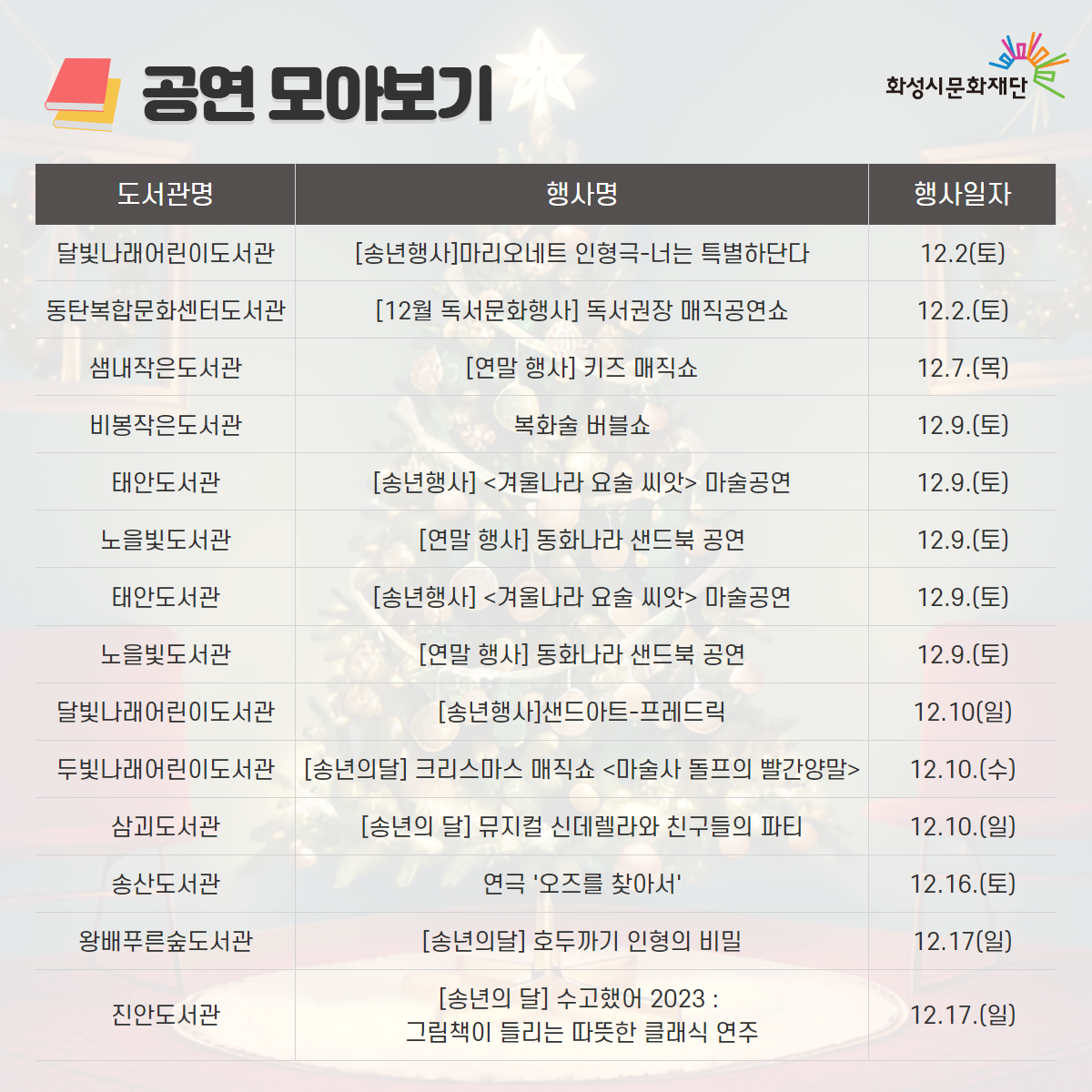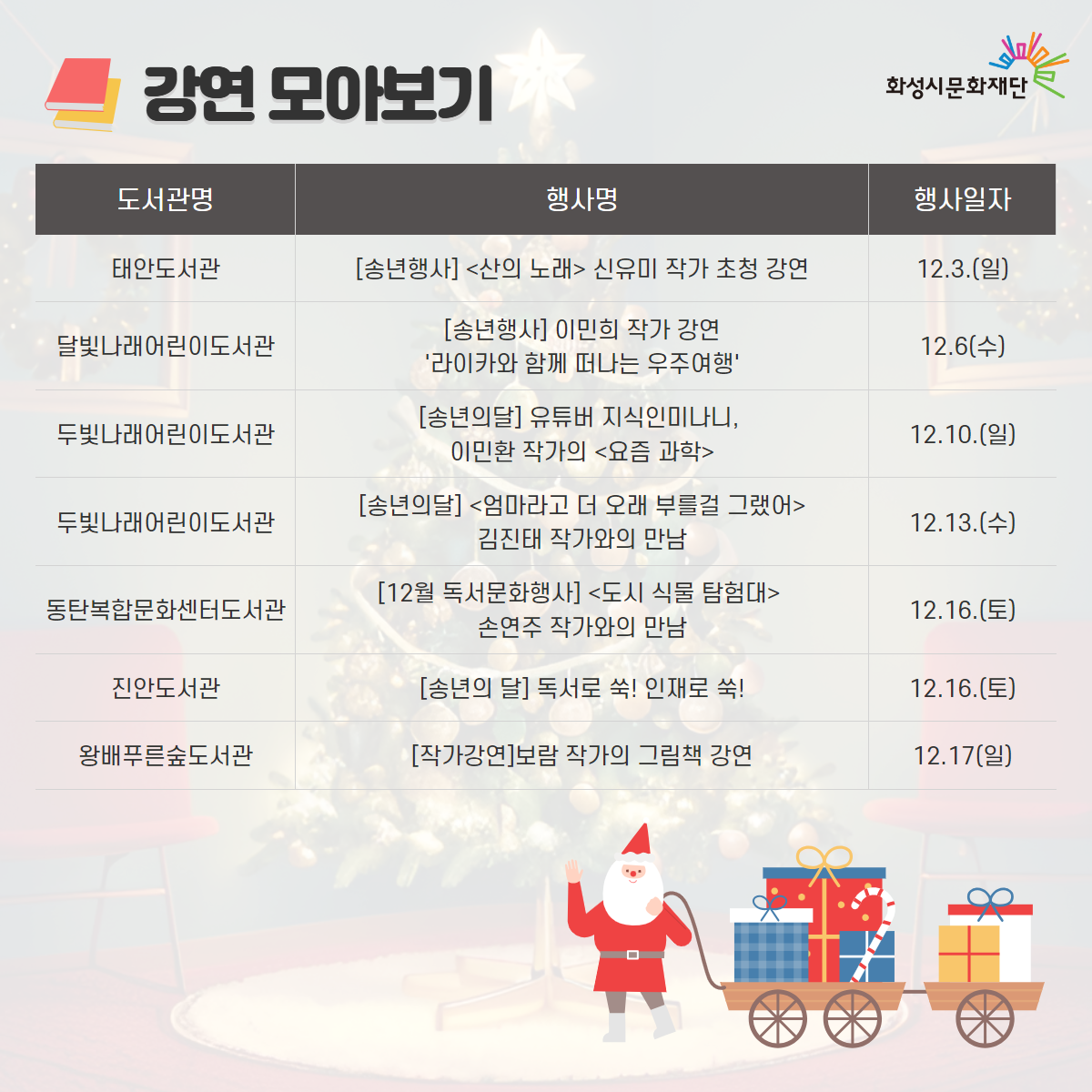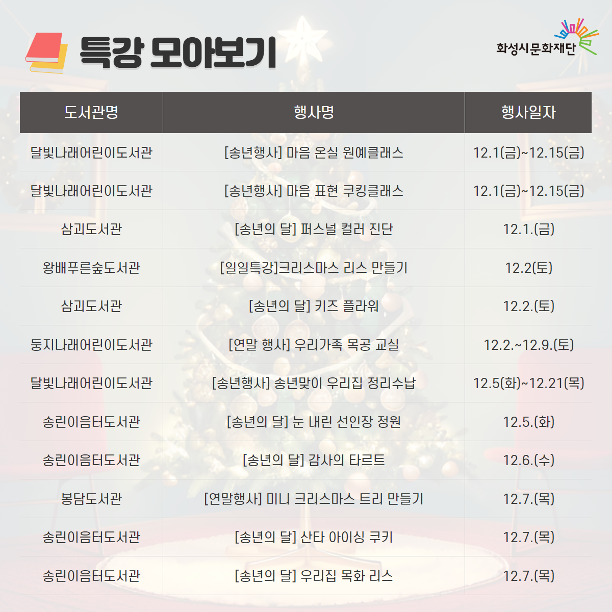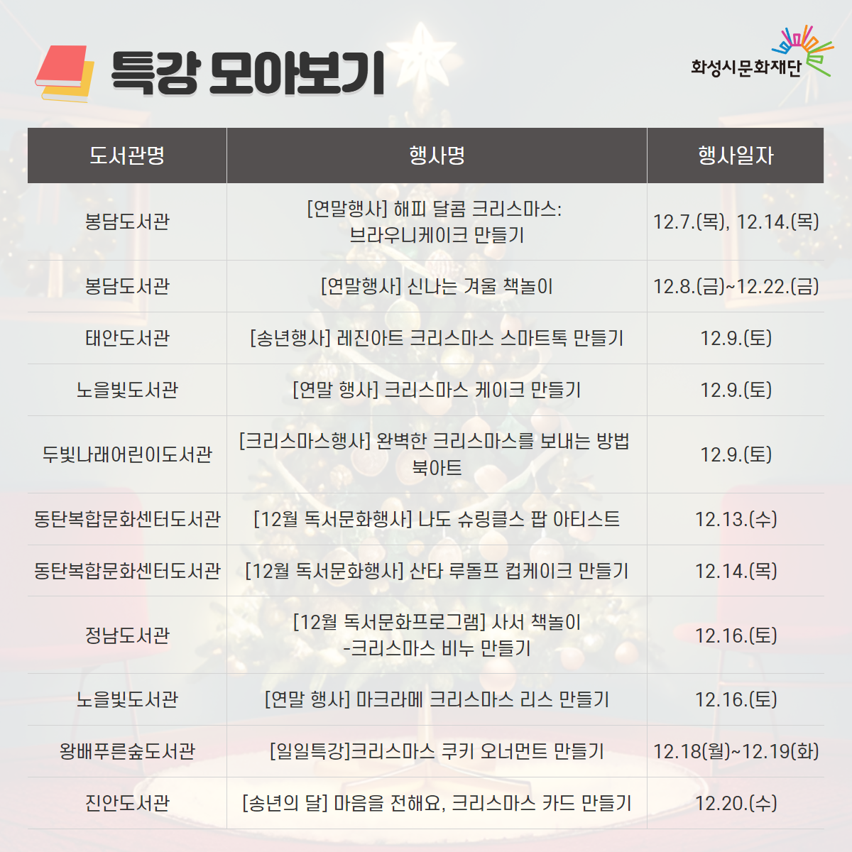 화성시문화재단 도서관 통합 월별 행사 안내 - 12월 연말행사