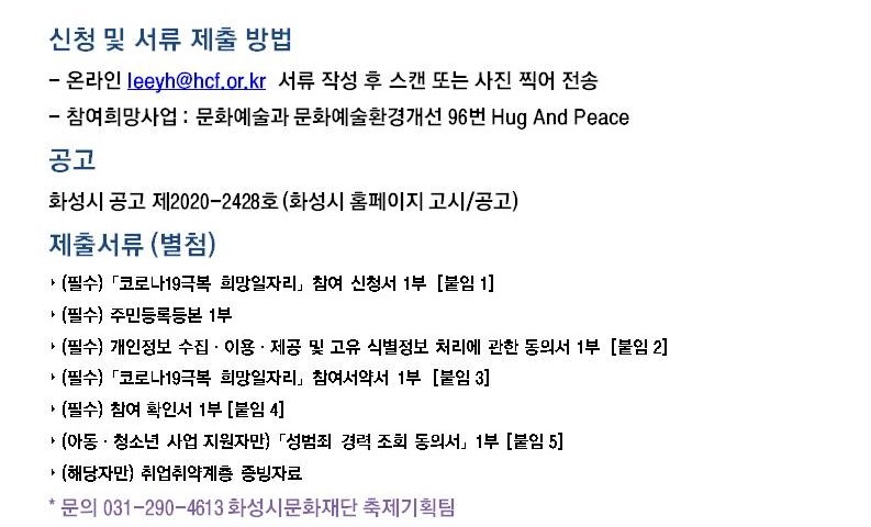 * 프로젝트 신청은 leeyh@hcf.or.kr 또는 031-290-4613 으로 문의 바랍니다. (화성시 자체 모집 기간 종료)