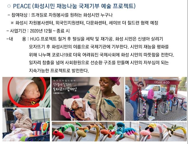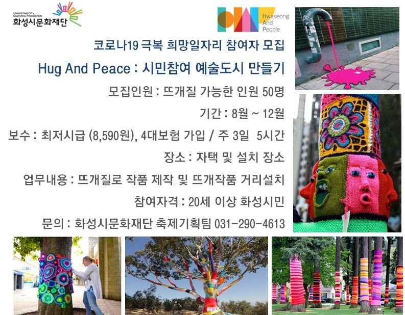 코로나19 극복 희망일자리 참여자 모집 (Hug And Peace 뜨개질로 시민참여 예술도시 만들기)