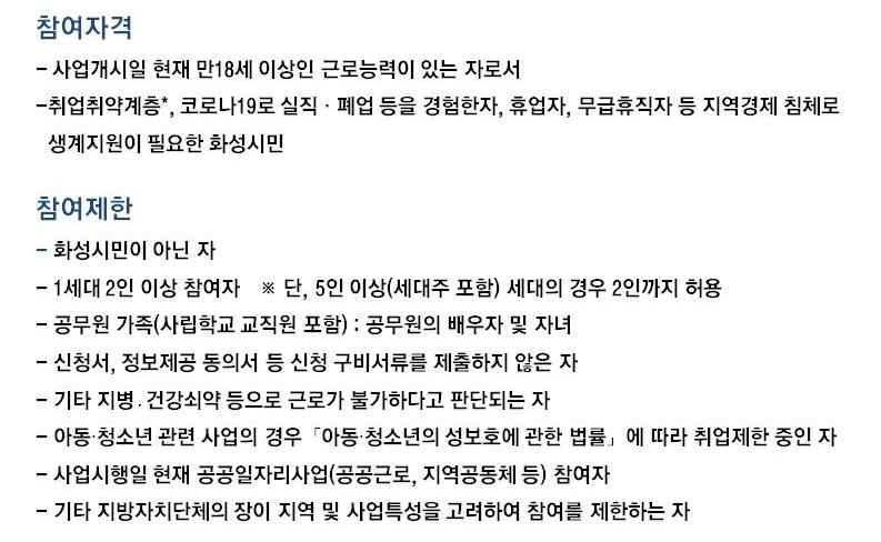 * 본 프로젝트는 코로나로 일자리를 잃은 실직자, 휴직자, 휴업자를 대상으로 신규 일자리를 제공하는 사업이므로