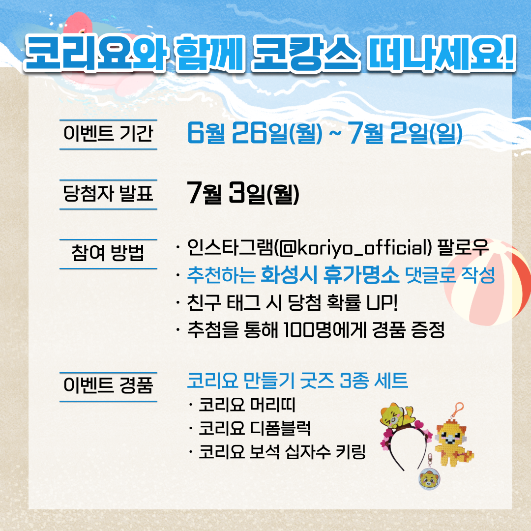 「문화가 있는 날 - 코리요」 화성시 가고 싶은 휴양지 추천 댓글공유 SNS 이벤트 안내