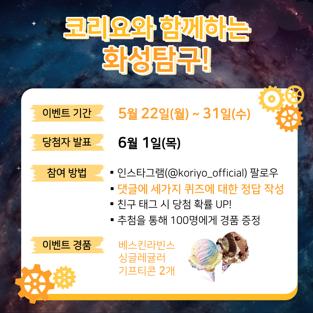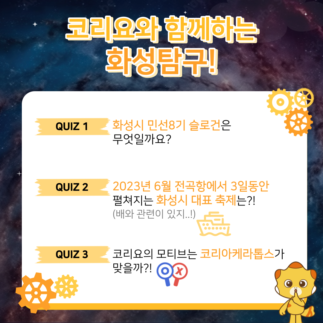 「문화가 있는 날 - 코리요」 화성탐구 SNS 이벤트 안내 작성자 관리자 작성일 2023년 5월 22일 13시 51분 9초 조회 457 5월 코리요 화성탐구1.png [ Size : 851.23KB, Down : 272 ] 미리보기 다운로드 5월 코리요 화성탐구1 5월 코리요 화성탐구2.png [ Size : 607.18KB, Down : 224 ] 미리보기 다운로드 5월 코리요 화성탐구2 5월 코리요 화성탐구3.png [ Size : 659.79KB, Down : 247 ] 미리보기 다운로드 5월 코리요 화성탐구3 목록보기