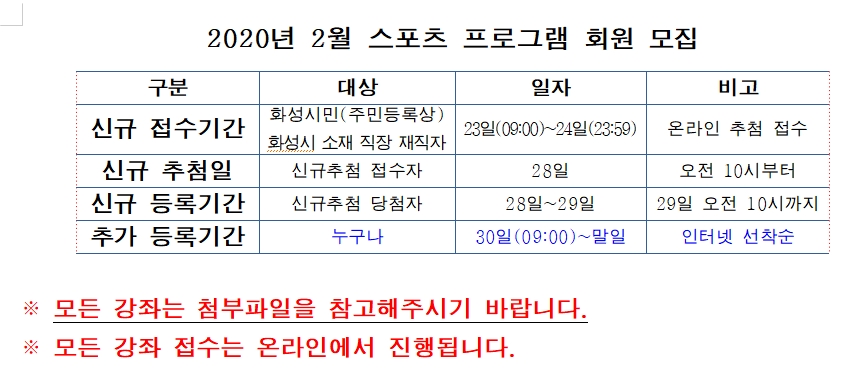 [스포츠] 동탄복합문화센터 2020년 2월 스포츠 프로그램 신규 모집 안내