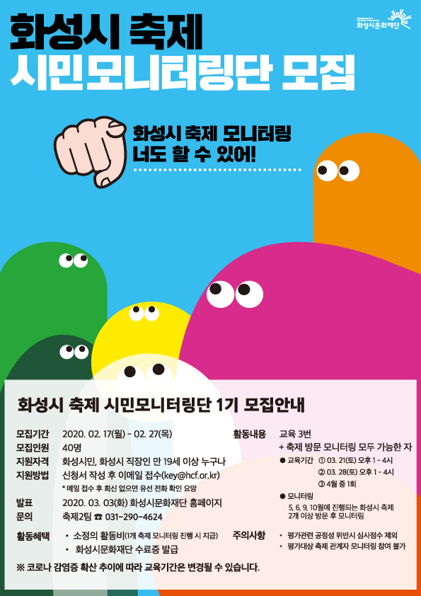 2020년 화성시 축제 시민 모니터링단 1기(상반기) 모집공고