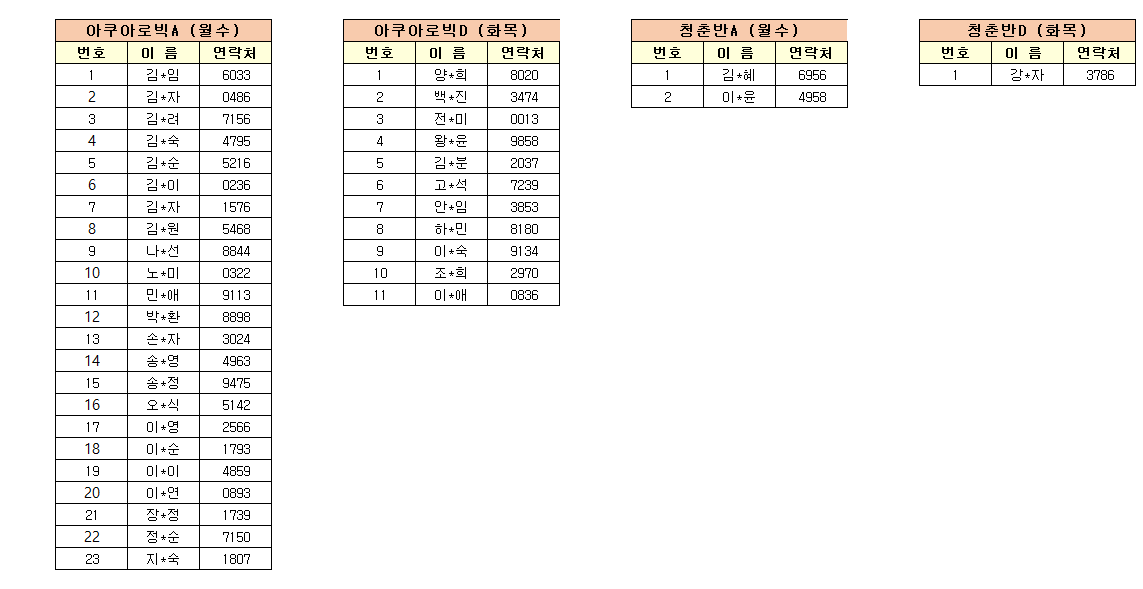 4. 아쿠아로빅.청춘 반배정.png   [ Size : 19.44KB, Down : 213 ] 미리보기 다운로드
