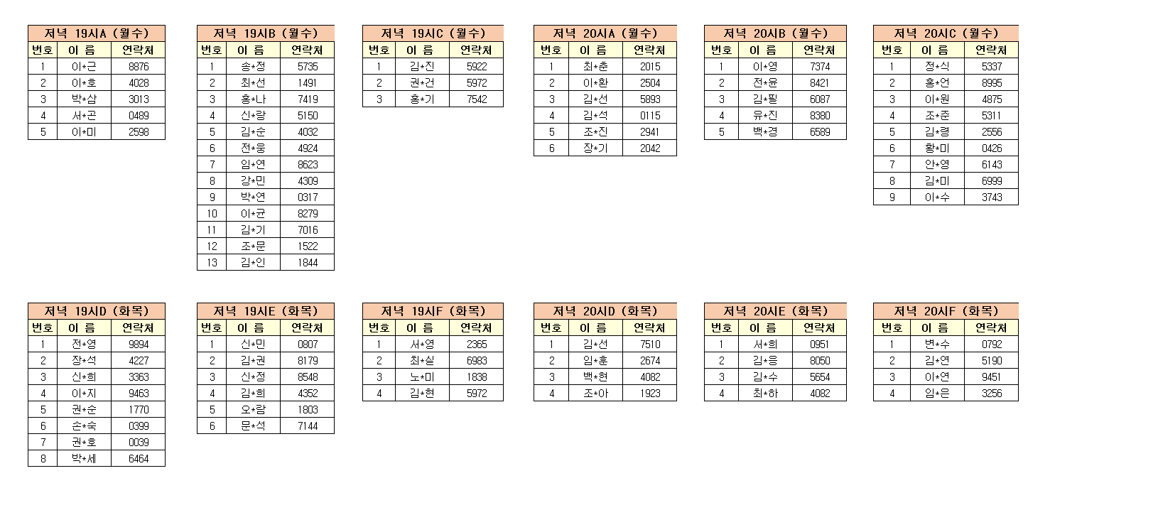 -강습반명, 성명, 전화번호 뒷자리, 강습요일을 확인하시고  강습에 참여해주시기 바랍니다.