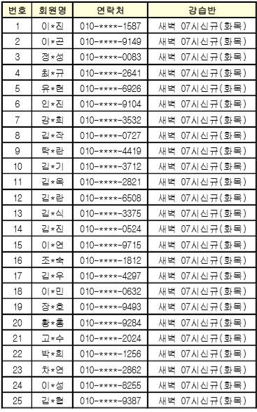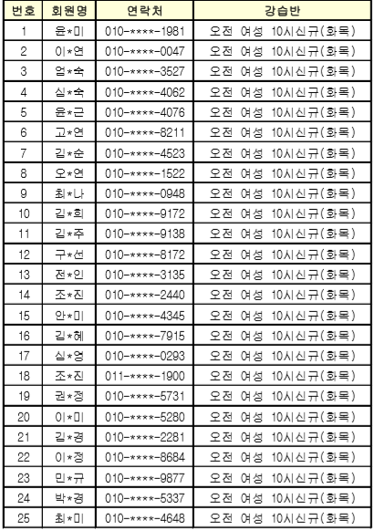 ★ 강습반 : 새벽 성인 07시(화목), 오전 여성 10시(화목)