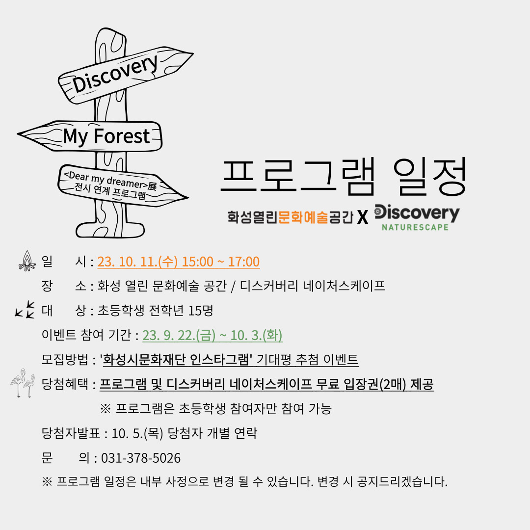 [화성열린문화예술공간] <Dear my dreamer>전시 X <디스커버리 네이처스케이프> 연계이벤트 (~10/3)