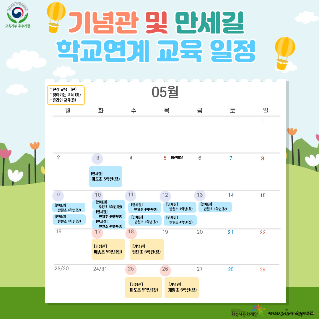 2022 제암리3·1운동순국기념관 및 만세길 학교연계교육 5월 교육 일정 안내
