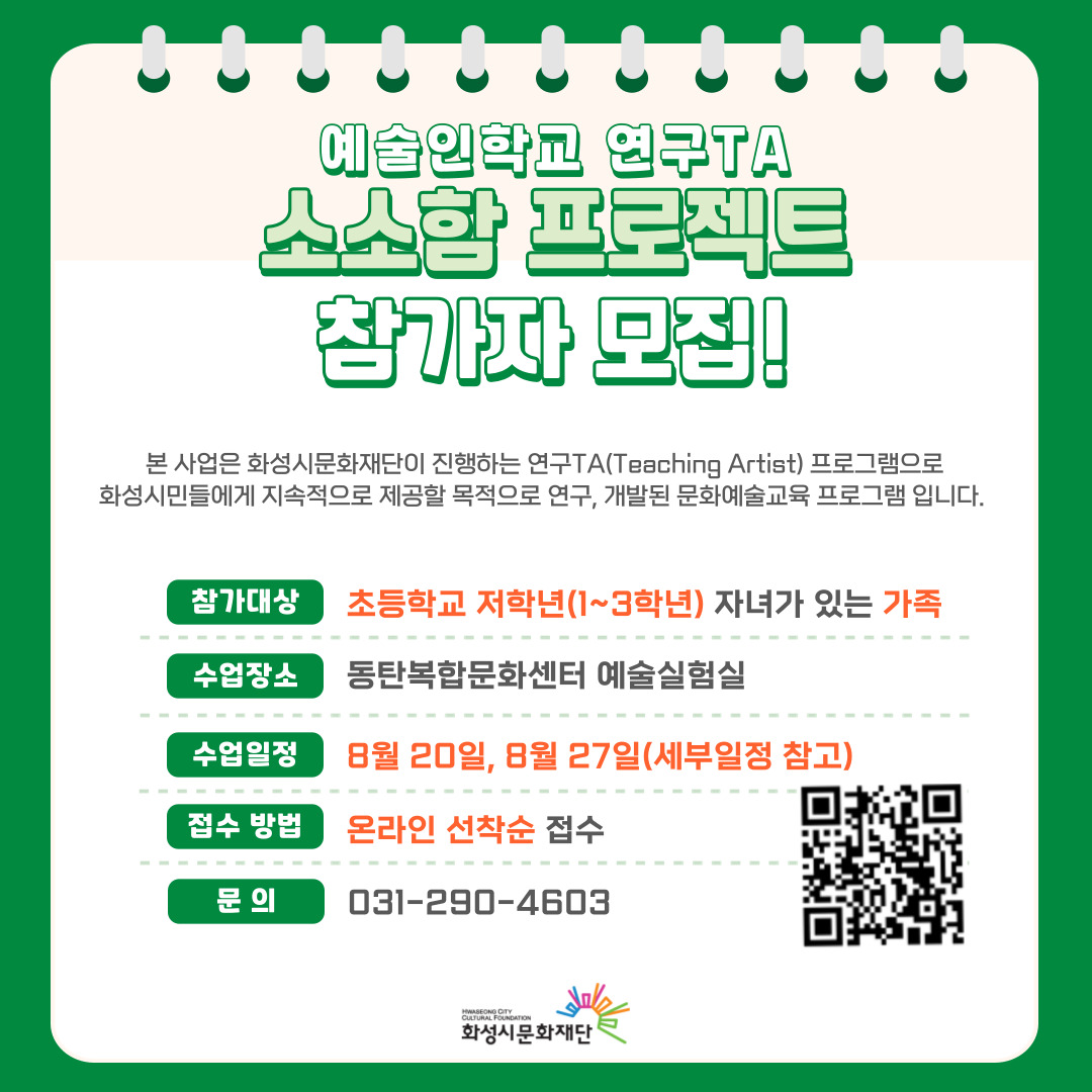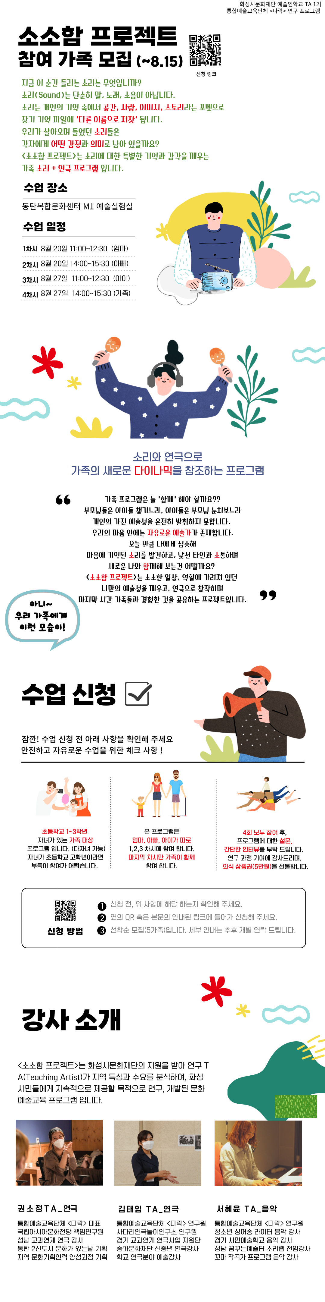 예술인학교 연구TA '소소함 프로젝트' 참여가족 모집