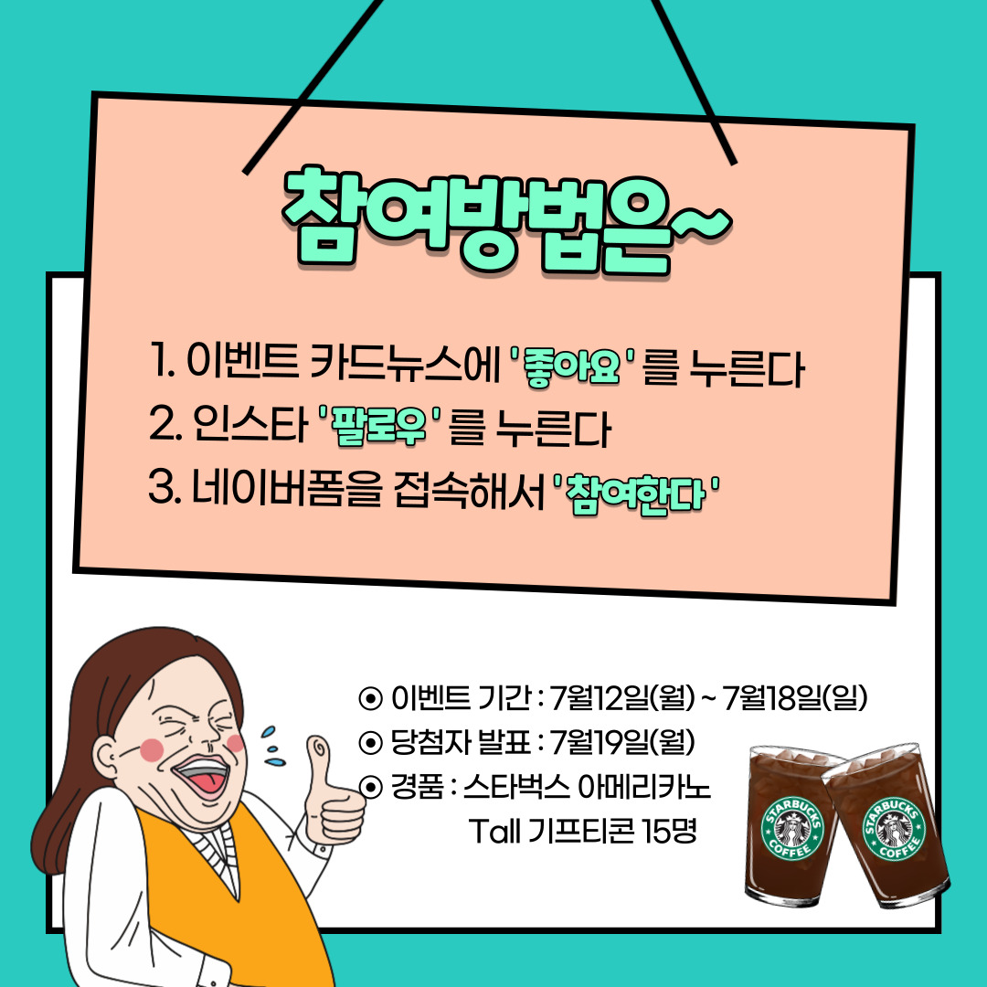 이번 이벤트에 참여해주신 분 중 추첨을 통해 시원한 아메리카노를 쏩니다!!
