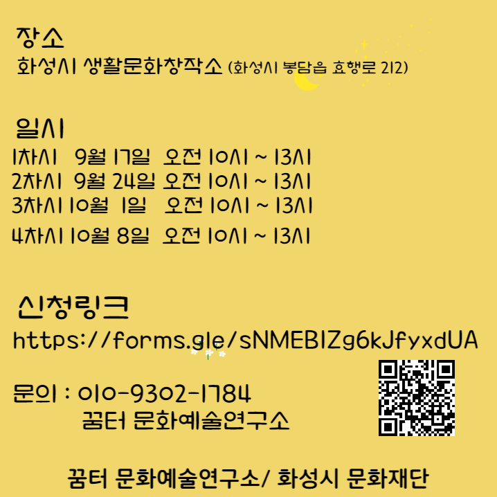 장소 : 화성시 생활문화창작소 (화성시 봉담읍 효행로 212)