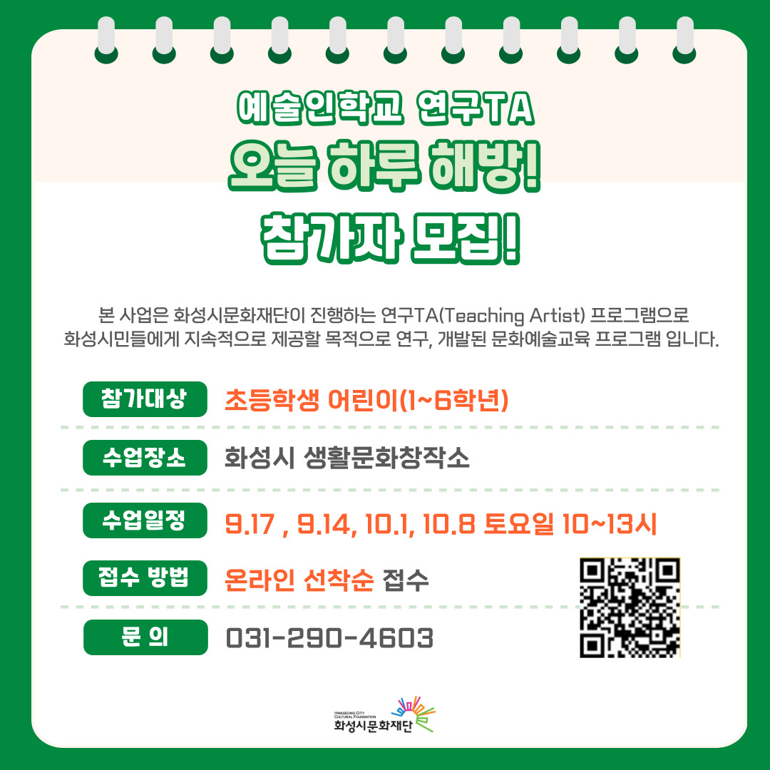 화성시문화재단 예술인지원팀  031-290-4603